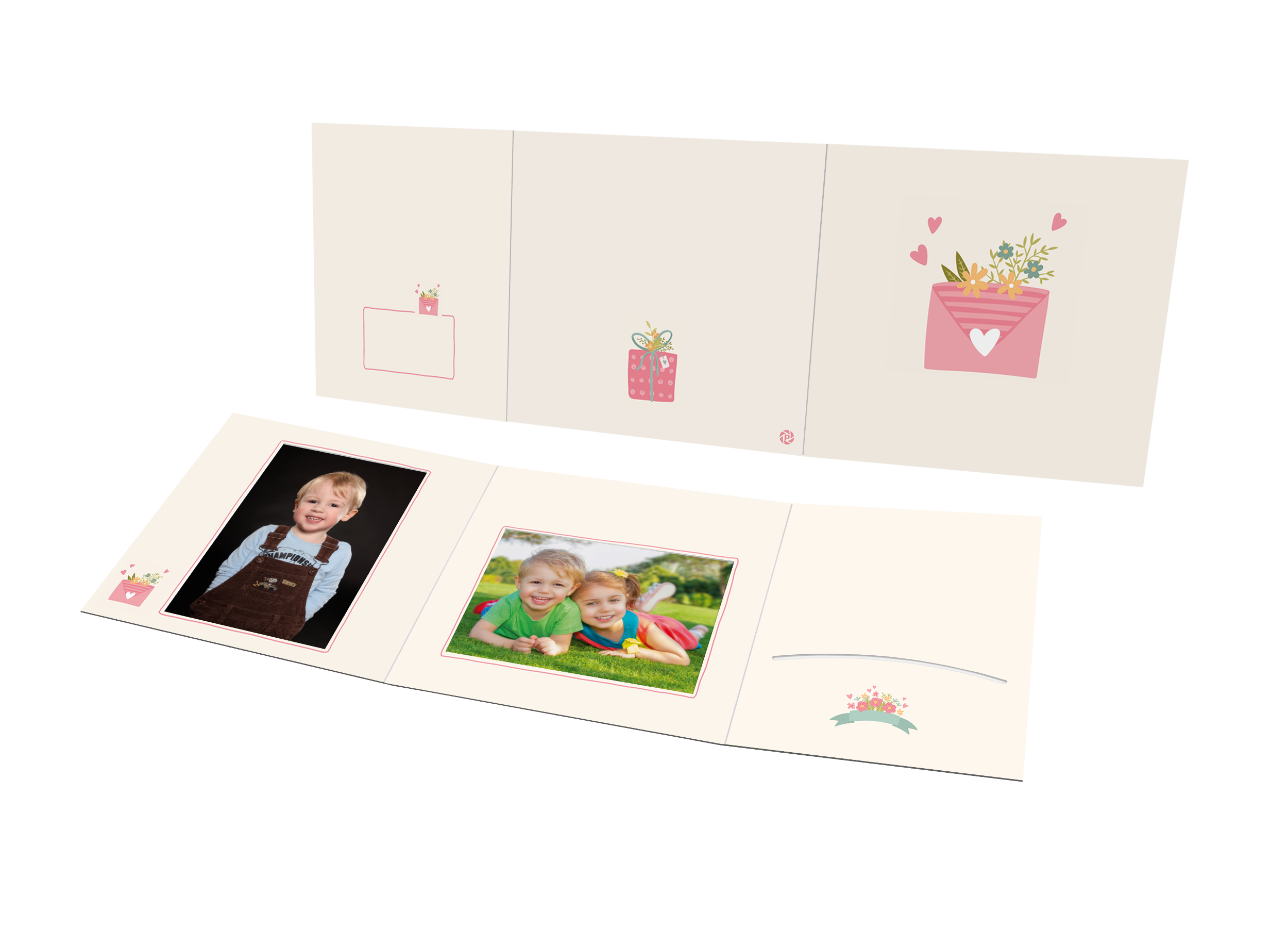Seite1: Hochformat  Seite 2: Querformat.  Seite 3: Bilderschlitz für weitere Prints